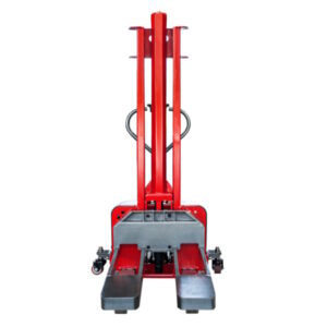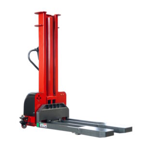 The Vango 1000E is a modern self-loading fully electric stacker with a 1000kg capacity and a lift height of 1.3 metres.