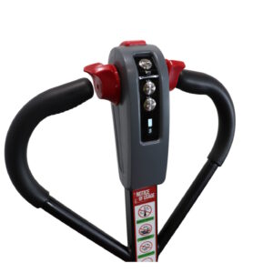 Features a multi-function handle for forward/reverse, lifting and lowering which also has an LCD display, horn and emergency stop button.
