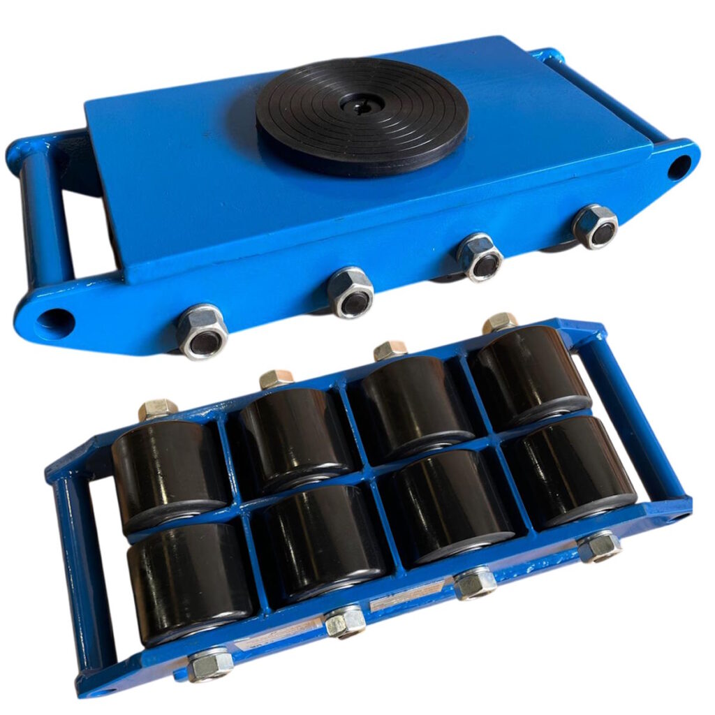The load can be lifted using either a jack or crowbar, allowing the skates to be easily positioned.